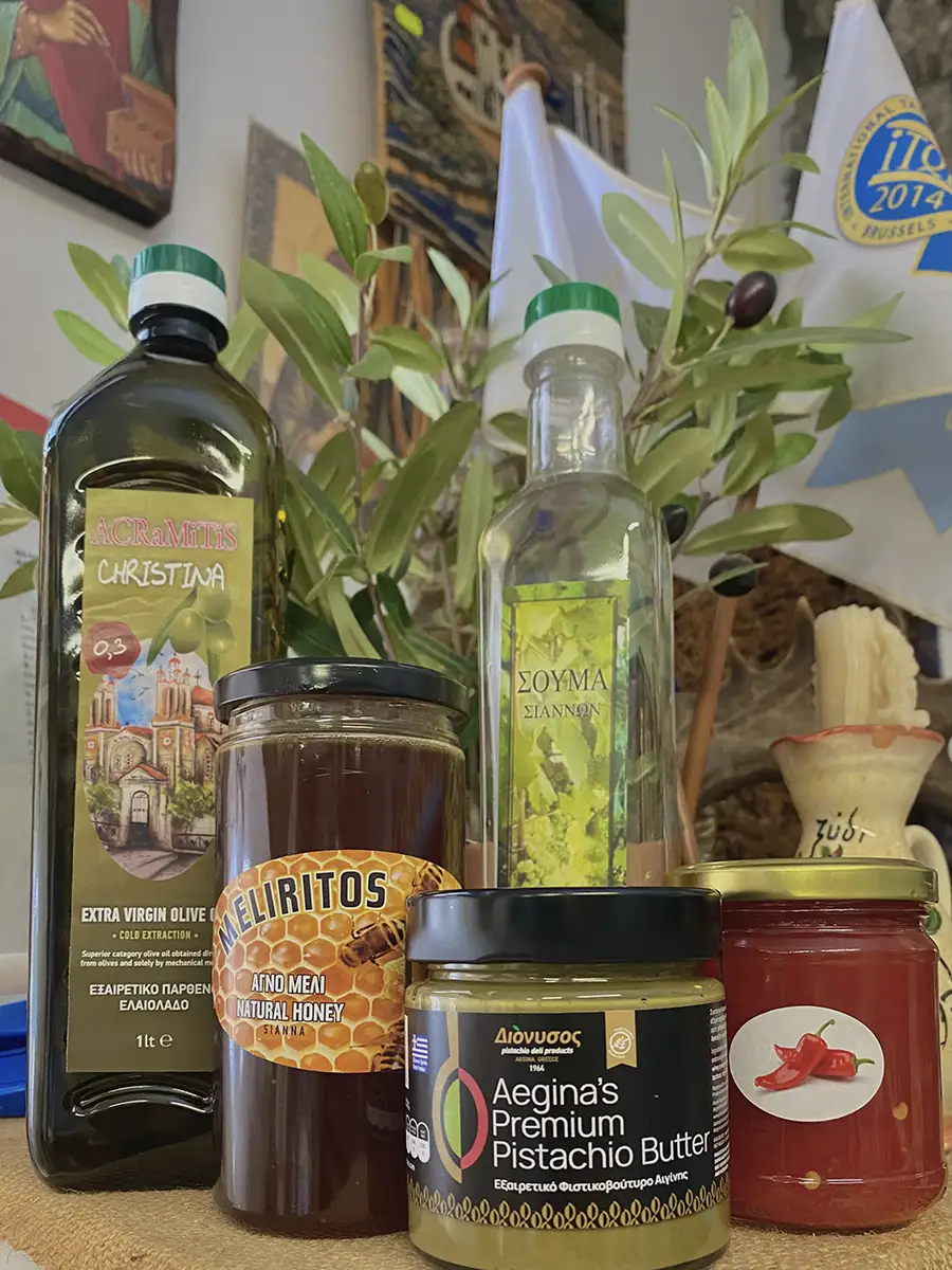 We proudly offer traditional local products — pure honey, rich extra virgin olive oil, and the beloved Rhodian spirit, souma. Every item on our shelves is made with care by local hands, preserving the taste and heritage of Rhodes.