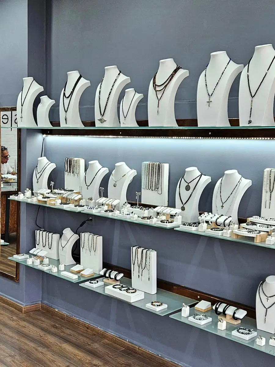 With locations in the historic Old Town and the vibrant Faliraki, our dedicated in-house design team focuses on creating unique handmade pieces that highlight a wide array of stones and styles.