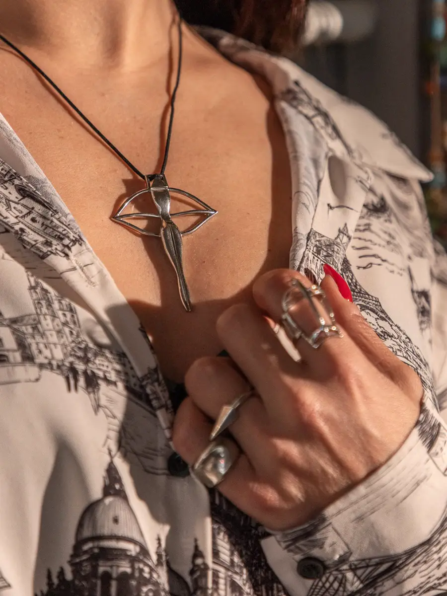 She uses gold, white gold, precious stones and mainly silver, believing that every moment has its own material and its own color.