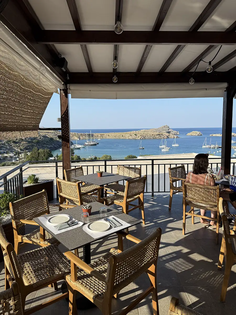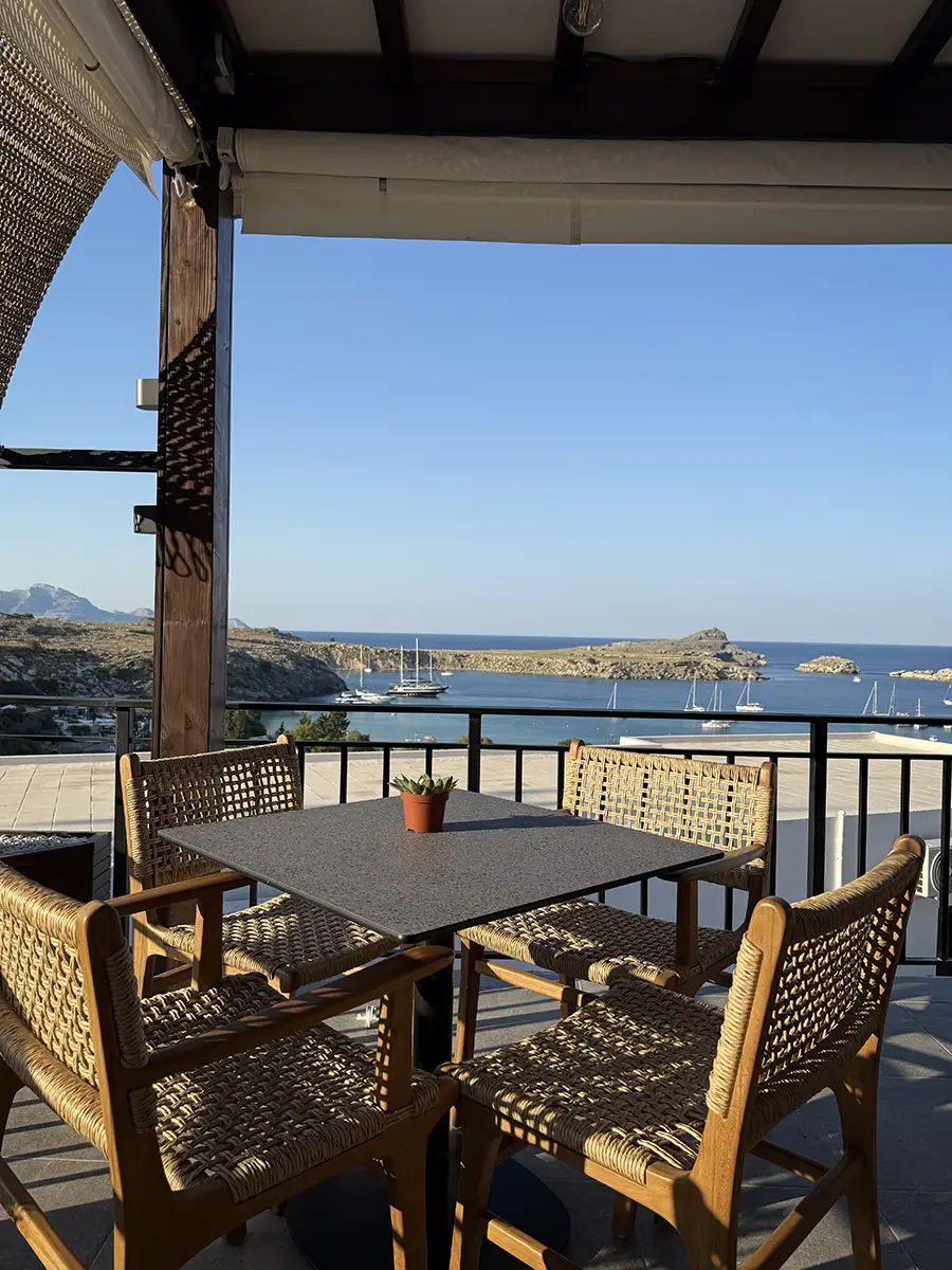 Enalio Resto Bar is Lindos’ seaside gem—a true all-day destination where taste meets relaxation. Set in a laid-back, tropical setting right by the sea offers aromatic coffee, delicious brunch, light snacks, and refreshing cocktails, all accompanied by breathtaking views.