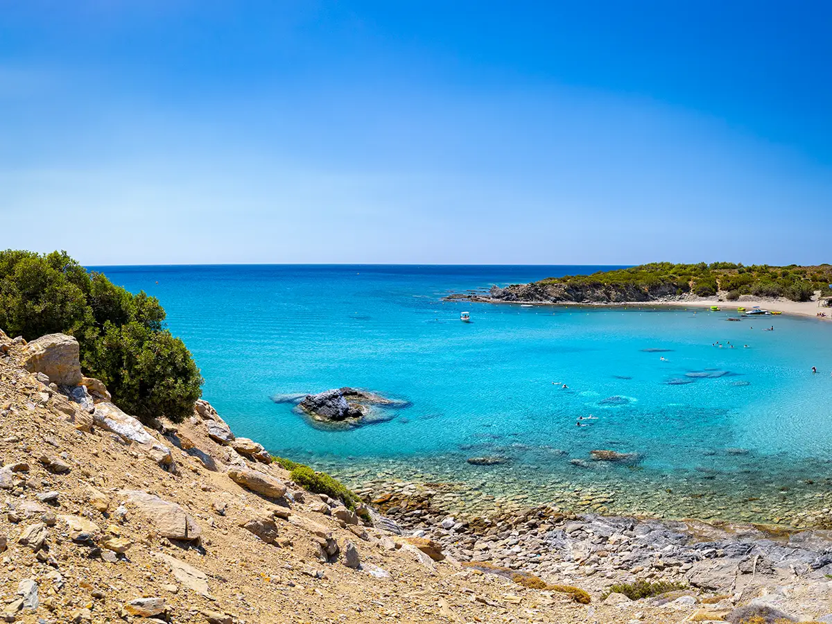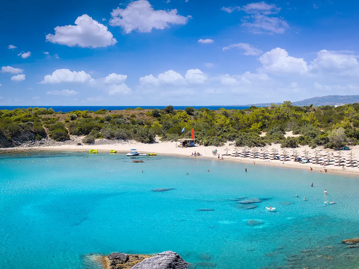 With its calm, shallow turquoise waters, it is an ideal spot for families with small children. While the beach was over developed before the wildfires of 2023, now there is only a small cantina available. Since there are no sunbeds or umbrellas, it’s wise to bring your own shade.