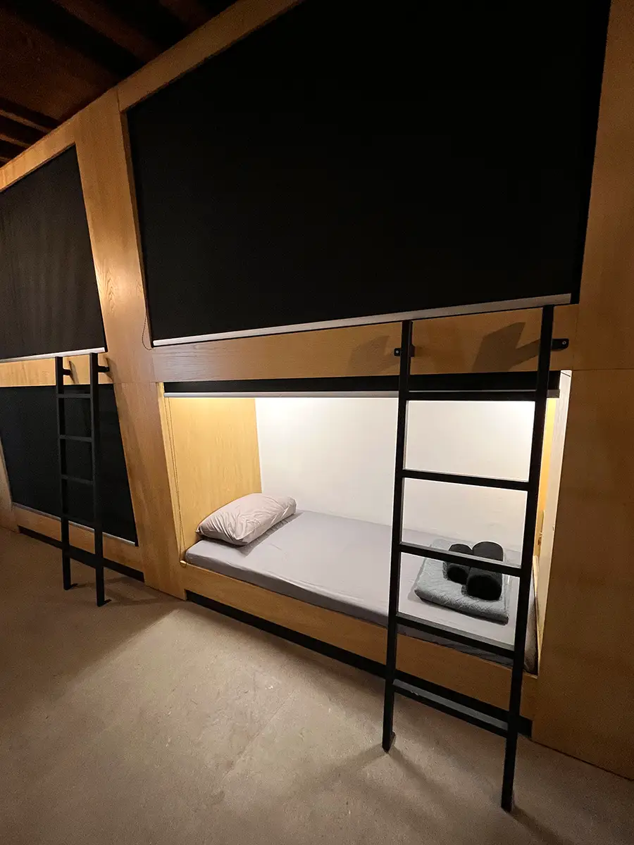 Every detail is designed with your comfort in mind. From complimentary WiFi, soft bath and face towels, and individual USB charging ports at every bed, to earplugs for a peaceful night’s sleep and a refreshing bottle of water upon arrival — we make sure your stay feels effortless from the moment you check in. The cost is €35 per night, plus an additional €2 for the overnight tax.