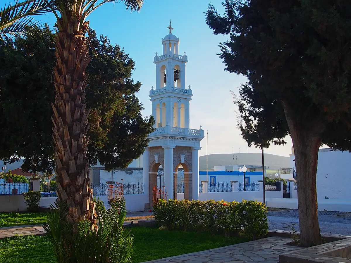 About 2 kilometers outside the village, you will find the Catholic Church of Agios Markos built during the Italian occupation. On the hill above the Church there are few ruins of the Paleokastro, built during the Byzantine period. Nearby, you can visit the ruins of the Old Silk Factory.