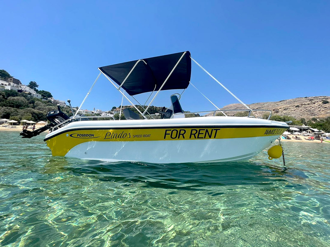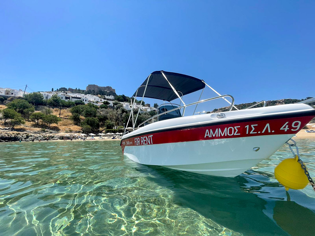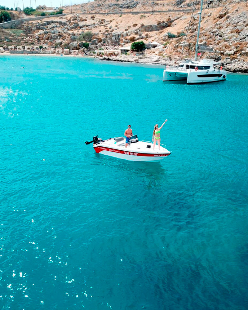 Lindos Speed Boats. An amazing experience awaits for you to fill your heart with thrill and joy. Rent a boat in Lindos with your friends or family and conquer the crystal-clear waters of Lindos beaches!