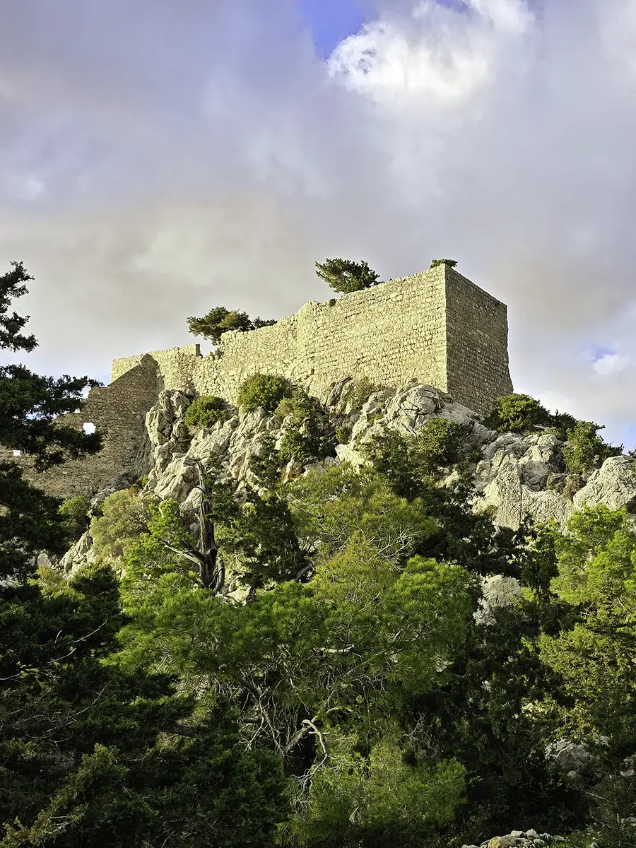 Situated on the southwestern part of the island, it lies approximately 70 kilometers from Rhodes Town and only 3 kilometers from the village of Monolithos. Constructed in 1476, it was erected on the remnants of an earlier Byzantine fortress, overseen by Grand Master Pierre d’Aubusson.