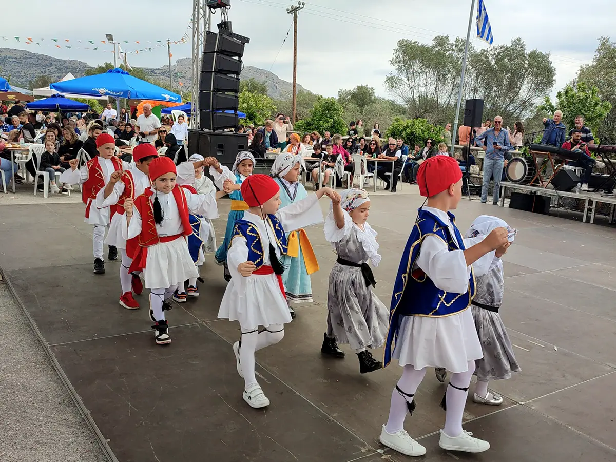 You will find an array of homemade treats like spoon sweets, jams, liqueurs made from various citrus fruits, and delightful orange pies. Also, the talented women of the village prepare local traditional meals, which are either offered or sold during the festival.