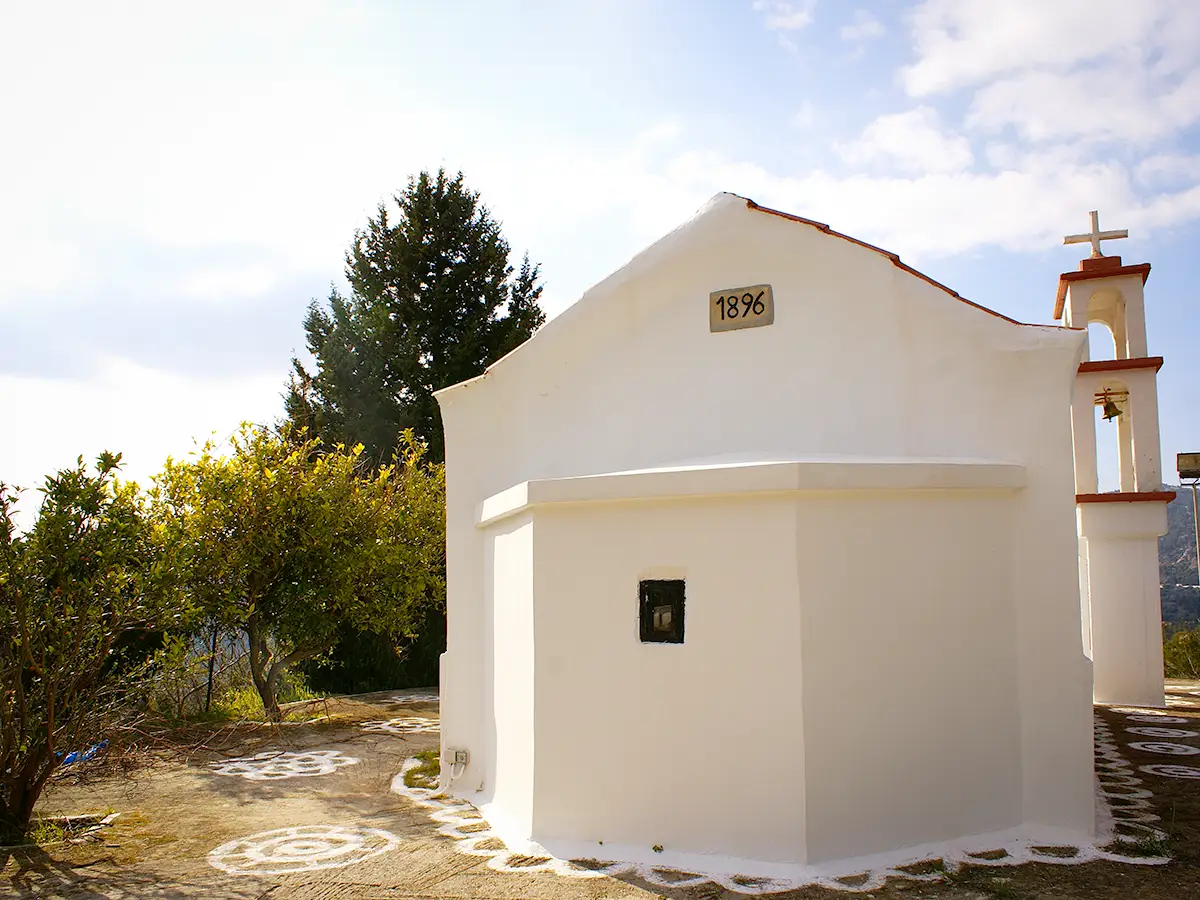 Wander along the quaint cobblestone paths and enjoy the flavors of the local traditional dishes. Also, make sure to visit the village’s main church, which is dedicated to Agios Georgios. Built in 1850, it boasts a beautifully crafted altarpiece made of high-quality wood.