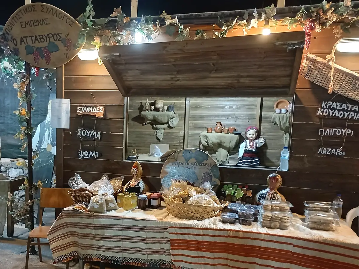 This historic event signifies the start of the harvest season, deeply connected to the rich winemaking heritage of Embonas village, renowned as the premier wine-producing area on Rhodes island. The kiosks at the festival are filled with local treats, such as mustalevria, yogurt with grape spoon sweet, and lovingly made goodies by the women of the village. And naturally, there is fine wine available for free for everyone.